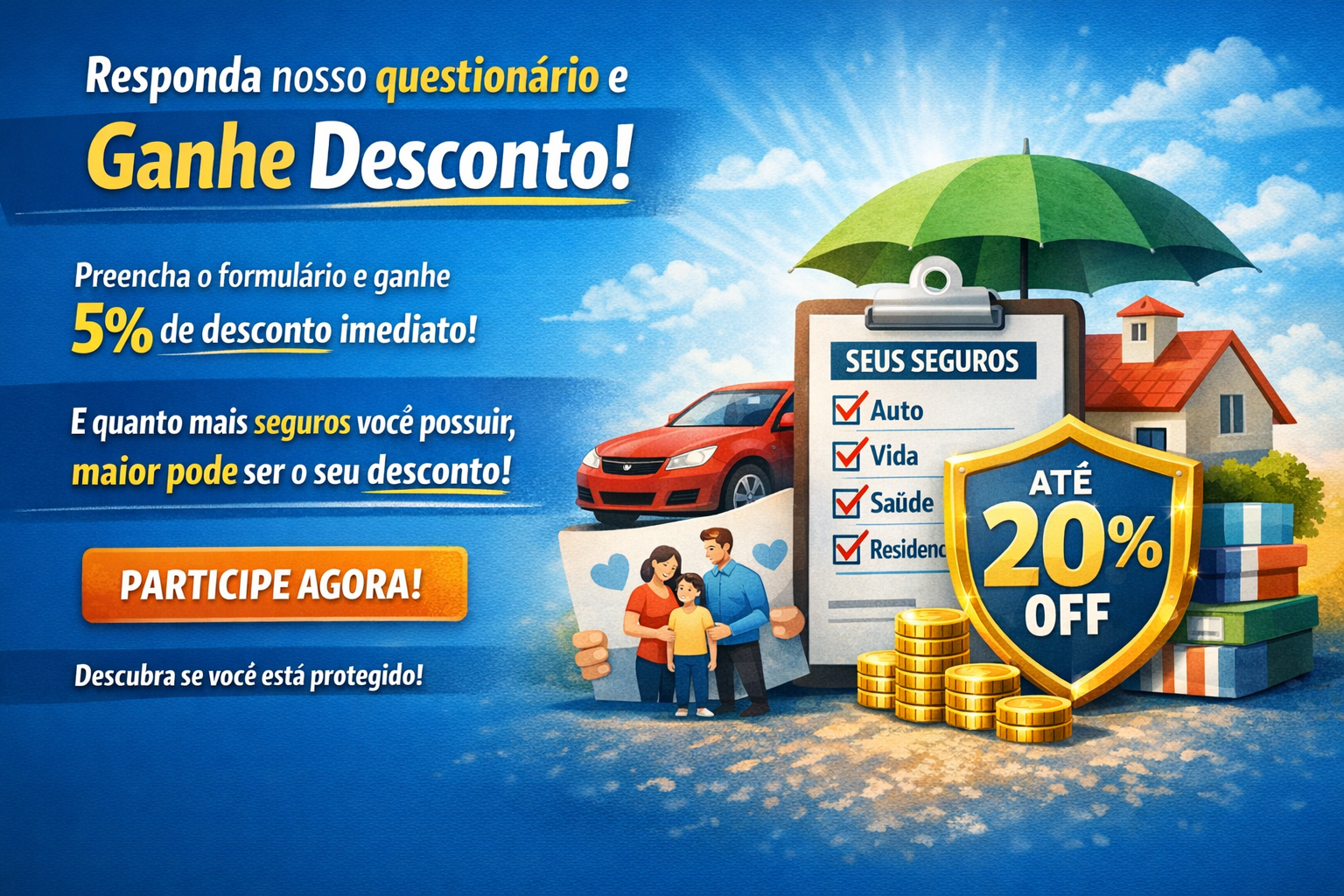 Ao responder nosso formulário, você garante um desconto imediato de 5% na contratação dos seus seguros.